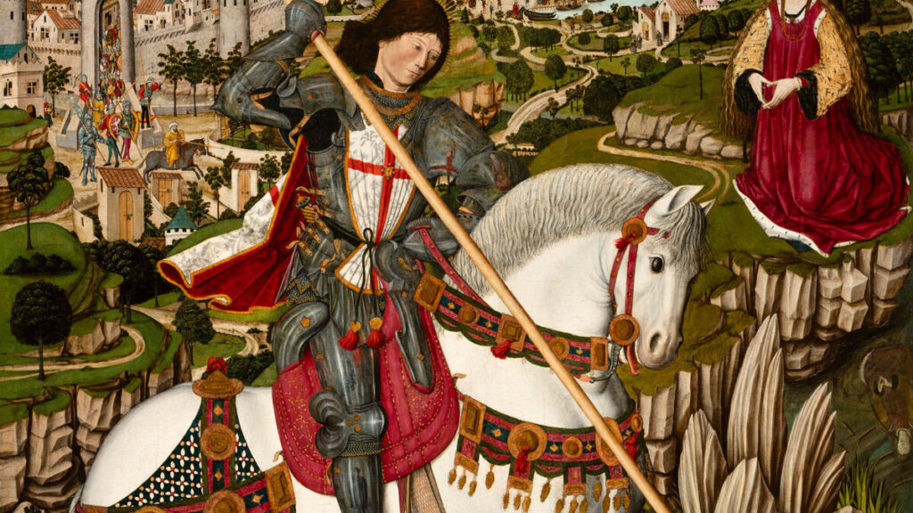 L’origen del culte a sant Jordi és força obscur, l’antropòleg J.G. Frazer el relacionava amb el déu semita Baal, conegut a Anatòlia com a Jdor, una divinitat que era derrotada en combat per la mort i després ressuscitada per la deessa Anad, en una metàfora del triomf de la primavera. Als Balcans aquest déu era celebrat cada 23 d’abril. La historia del Jordi cristià va aparèixer al segle IV i el presentava com un soldat romà que, durant una persecució contra els cristians, es va negar a matar ningú i per això va ser martiritzat. El culte al sant va arribar aviat a Europa, i sant Jordi de Capadòcia ja va ser venerat per la monarquia merovíngia. Posteriorment, els guerrers que tornaven de les Croades el van fer patró de la cavalleria europea. I al segle XIII es va difondre la seva llegenda, recollida a la Llegenda daurada de Jacopo da Varazze. Allí Jordi era un guerrer que salvava una princesa de morir devorada per un drac, i quan queia la sang del monstre a terra hi naixia un roser.